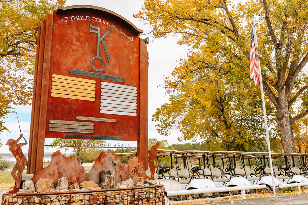 The Keyhole Golf and Country Club is located in Pine Haven and open to the public. The 35 par, 9-hole course opened in 1975 and is located on the shores of Keyhole Reservoir. The entrance to Keyhole State Park parallels holes 7 and 8. Numerous tournaments are held throughout the summer, and the clubhouse hosts bingo games and other community activities during the colder months. Carts are available and walking is also allowed on this picturesque course with affordable green fees. The club house was built in 2016 and has a bar and snack bar. The golf course can be reached by calling (307) 756-3775.